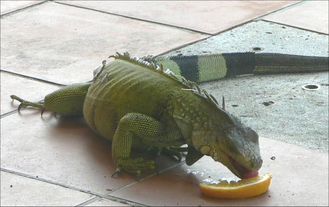 Previous Image Next Image Iguana PI – Iguana shows up at the Iguana Bar. He couldn’t let the rabbit and the chickens have all of the fun.